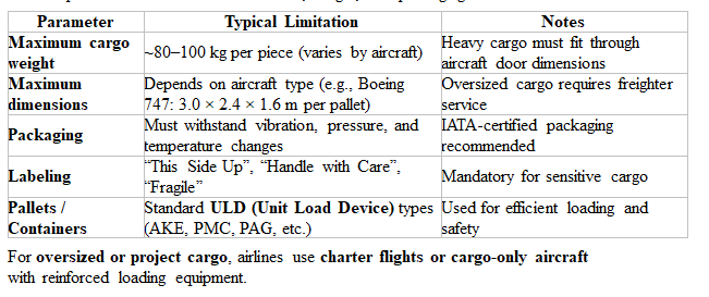 Air transport has strict limitations on size, weight, and packaging: