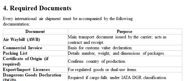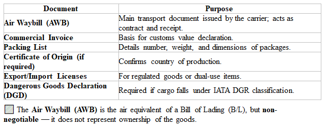 Every international air shipment must be accompanied by the following documentation: